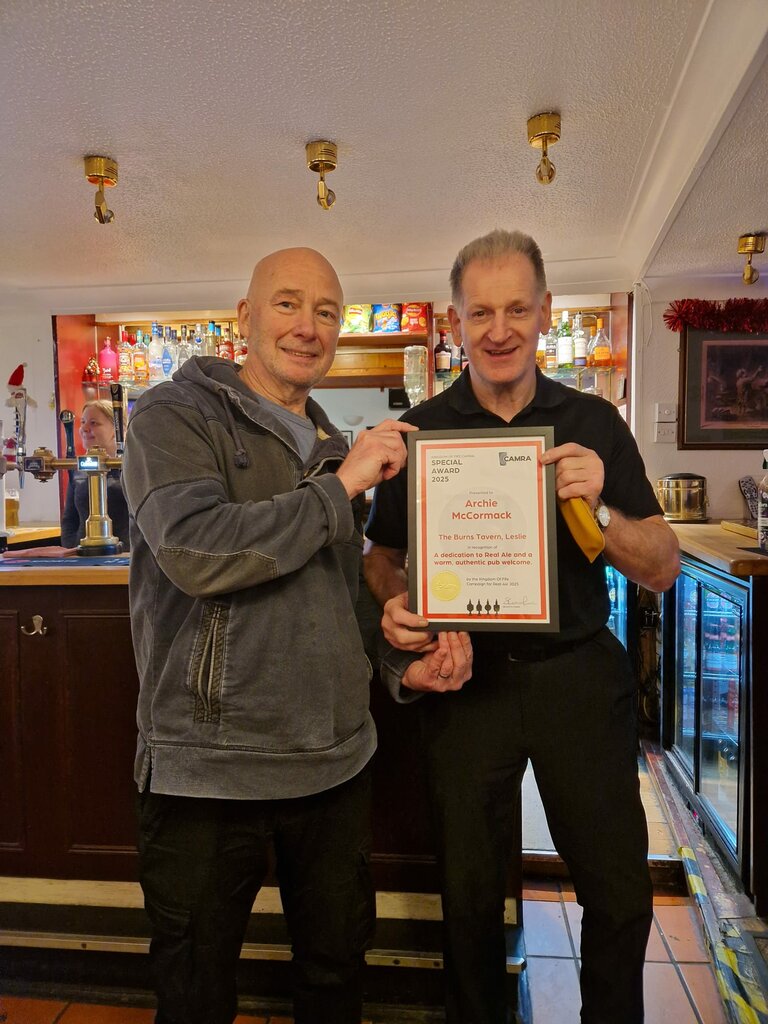 A very well-deserved award and a perfect way to round off our presentations for the year. Congratulations, Archie, and thank you for everything you do for pubs and drinkers in the Kingdom of Fife